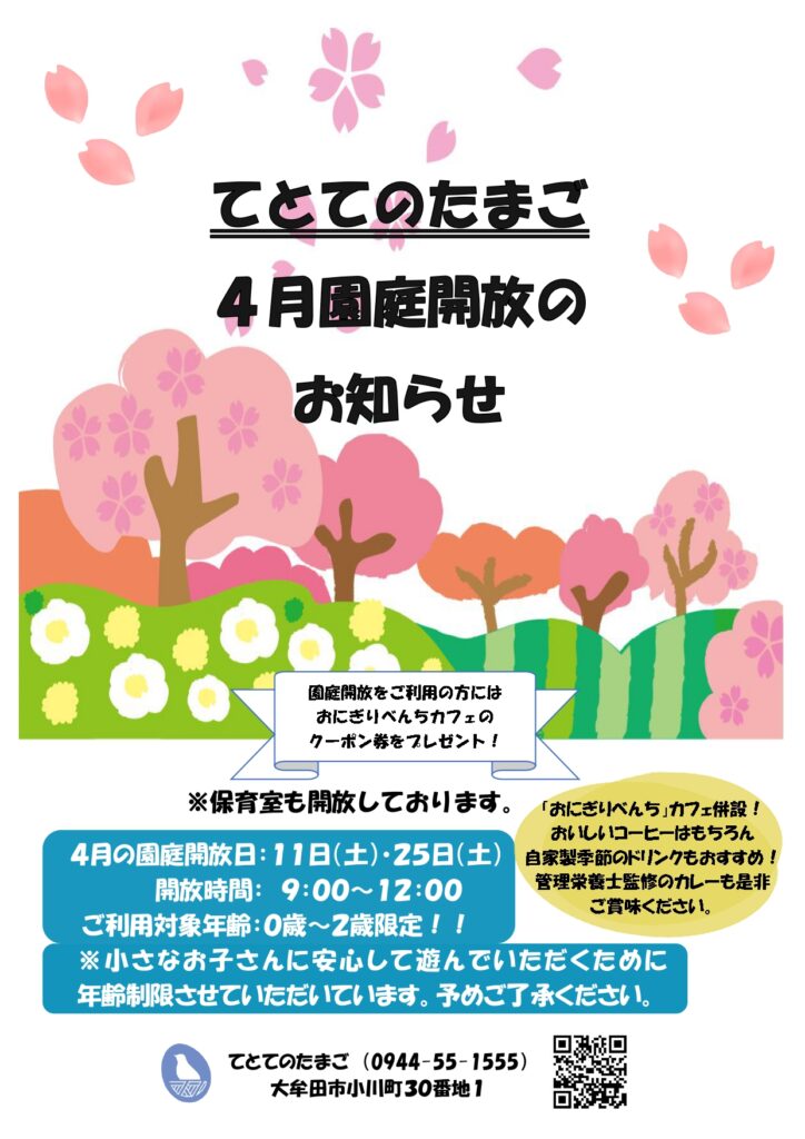 4月の園庭開放日:11日(土)・25日(土)