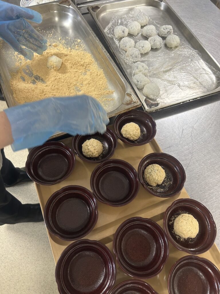 菅原病院栄養課では、秋のお彼岸に合わせて入院患者様へおはぎを提供しました。昔なじみの味を工夫し、安全に美味しく召し上がっていただけるよう配慮しています。
