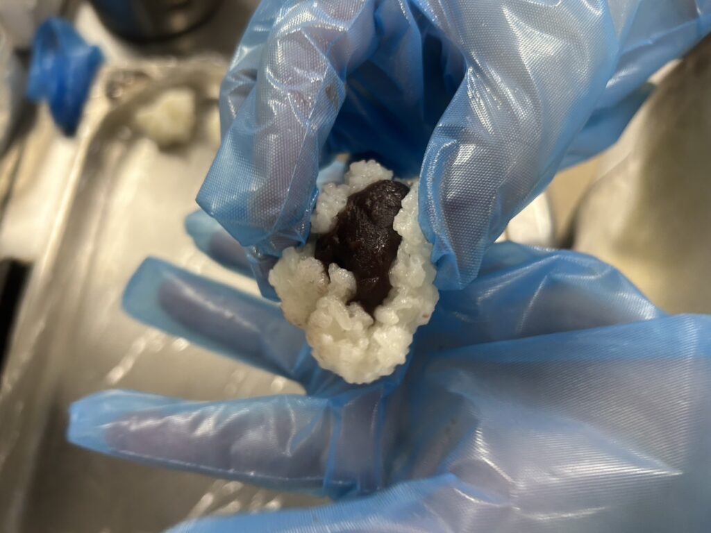 当院では週に1回、おやつを入院患者様に提供しています。今回のおはぎは、もち米を使うため高齢の方には食べづらい面もありますが、もち米の配合を工夫し、安全に召し上がっていただけるよう調整しました。懐かしい味わいに「昔を思い出しました」「おはぎが大好きなのでうれしい」といった声も多くいただき、患者様同士の会話も弾み、笑顔あふれるひとときとなりました。